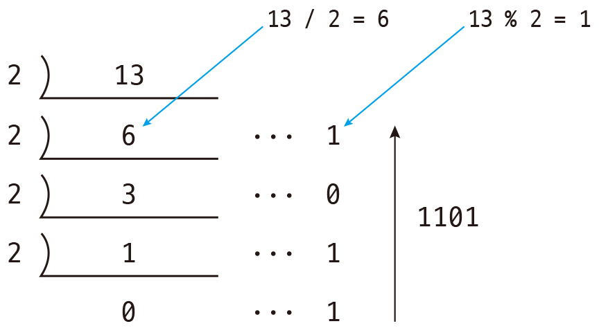 10진수 N을 2로 나눈 나머지를 리스트에 추가하면 2진수 N이 된다.